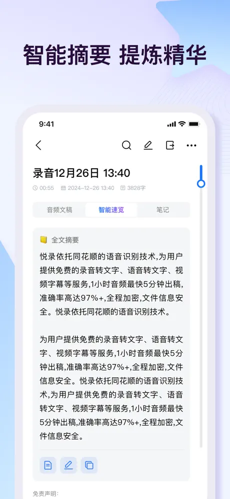 悦录是同花顺推出的AI语音转文字工具,支持多种场景下的录音转文字需求,如网课学习、采访录音、办公会议、灵感速记等。悦录提供免费的“实体级”录音服务,支持音视频链接解析、苹果播客快捷导入。悦录用高级别加密云存储,确保数据安全,支持多端同步,方便管理音频文件。悦录支持多类型文件导入、导出和分享。