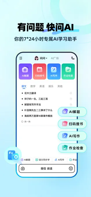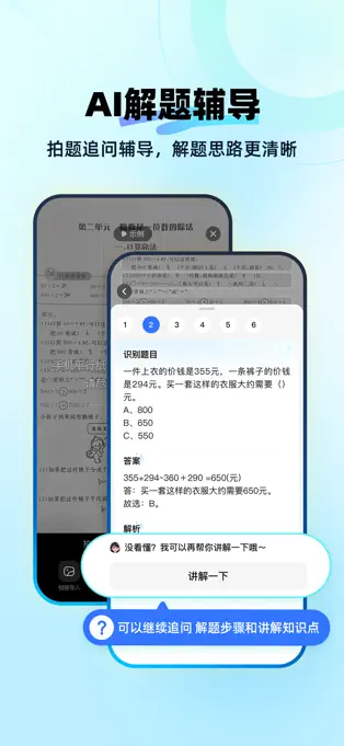 - 智能解题:帮助用户解答各种学科题目,包括数学、语文、英语等,提供详细的解题步骤和解析。