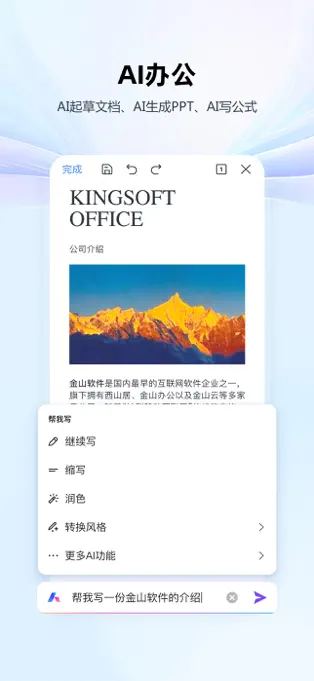 AI 功能强大:能快速创作 PPT、Word 等文档,提供内容续写、格式优化、数据分析等服务。
