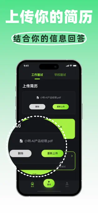 - 1V1定制答案库:上传简历后,AI生成专属回答,量身定制每一句话。
