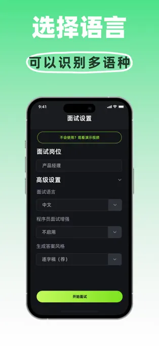 - 自动多语种翻译:支持多语种面试,AI自动翻译对话,生成双语答案。