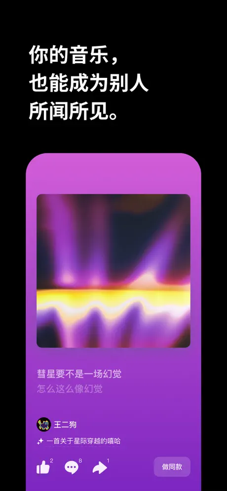 - 图片成曲:用户随时随地上传图片,AI 根据图片内容生成与之匹配的歌曲,为用户的瞬间配乐。