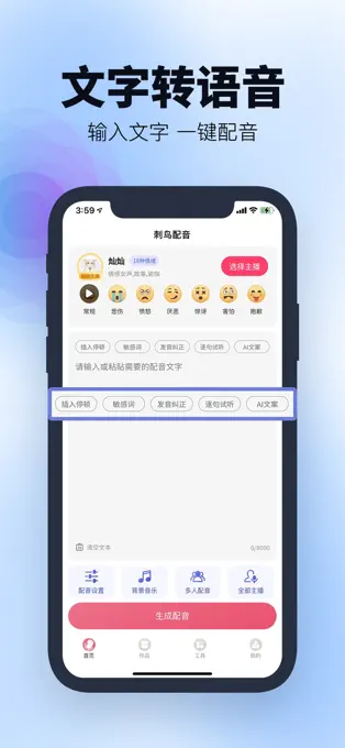 多音字纠正与停顿设置:支持多音字发音纠正和自定义停顿,确保配音自然流畅。