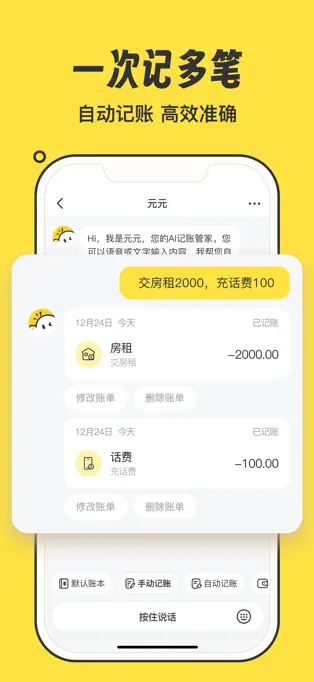 多种记账方式:支持语音、文字和手动记账,满足不同用户需求,确保随时随地都能轻松记账。