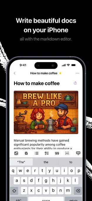 Markdown 助力写作:支持 Markdown 格式,方便用户创建结构化、多媒体丰富的文档,如笔记、计划、清单等。
