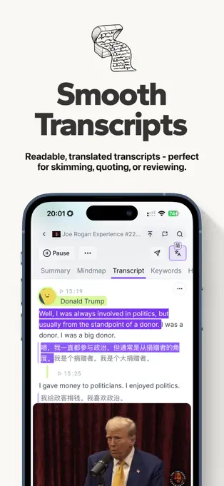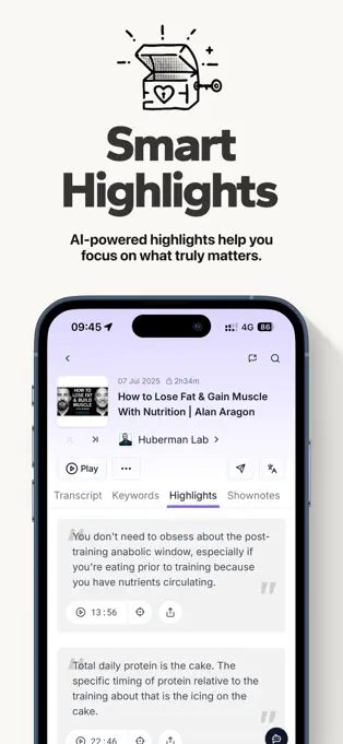 关键要点提取:自动识别并突出显示播客中的重要信息,让用户能一目了然地获取重点。