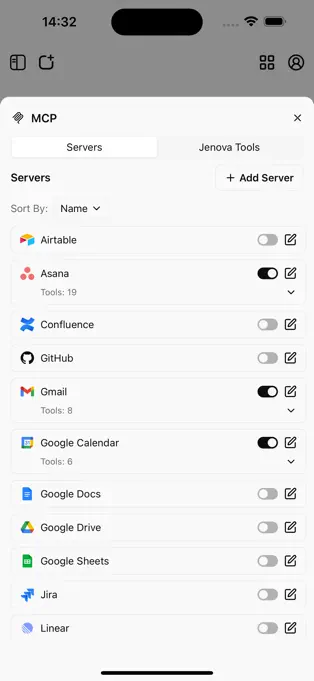 连接远程服务器:作为 MCP 生态系统的一部分,Jenova 能让用户轻松连接并使用远程服务器,实现更强大的功能扩展和资源共享。