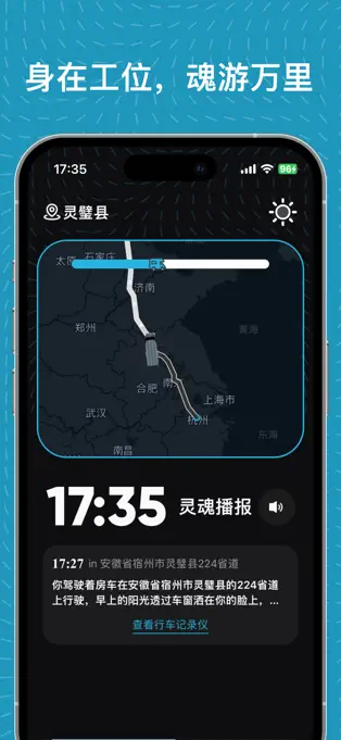 魂旅是AI云旅游App,让用户在工位上也能“魂游万里”。用户可指定旅游地点,App会生成“分身”,根据选择的载具(如自行车、摩托车、房车等)模拟移动速度,带你“实地”游览。AI会结合地理位置沿途讲解,仿佛真人导游。