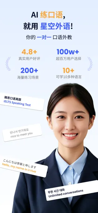 星空外语是集AI英语口语练习、雅思真题训练与中小学英语课程同步学习于一体的教育类App。通过24小时1对1口语外教、200+生活场景对话、雅思真题模拟等特色功能,帮助用户提升口语能力。提供语法纠错、发音逐词分析、作文批改等贴心服务,让用户在学习过程中能及时纠正错误,稳步提高英语水平。App支持小学、初中、高中英语课程同步学习,助力学生更好地掌握课本知识,提升学习成绩。