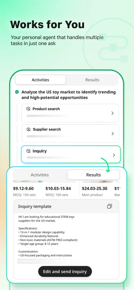 - 实时匹配:根据用户需求实时匹配海量产品数据库,通过多轮推理模型验证产品信息。