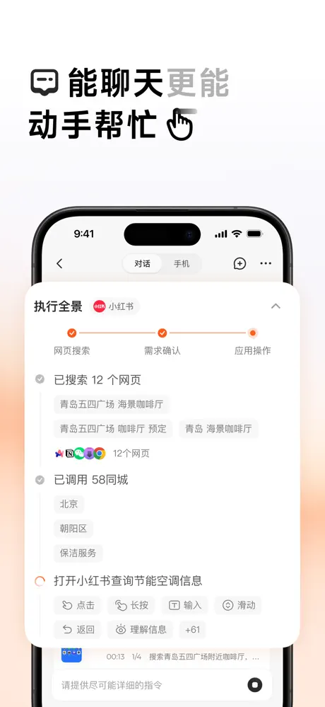- 多App协同操作:能在多个App之间进行协同操作,例如从一个App获取信息后在另一个App中使用。