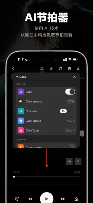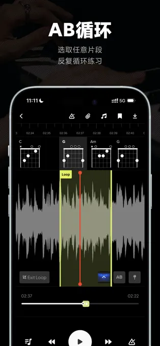 音频编辑:支持 AB 循环播放、音频书签、速度和 EQ 调整等功能,帮助用户高效扒谱、练习歌曲。