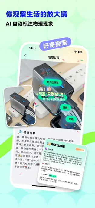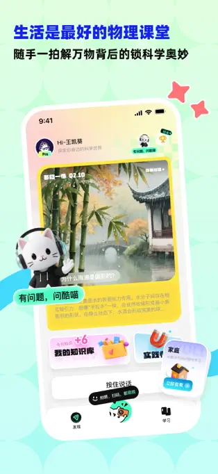 拍照悟理 :用户可以通过拍照功能,将现实中的物理现象捕捉下来,应用会基于此为用户解读其中蕴含的物理知识,让知识回归生活场景,使用户感受到知识的生动性与实用性。