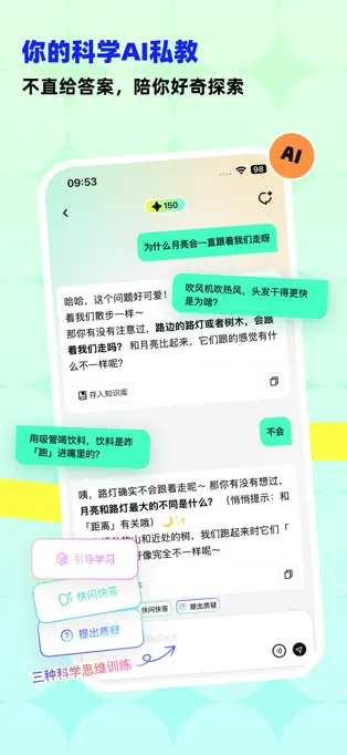 悟理问问 :用户可以提出自己内心对于物理或其他相关问题的好奇疑问,AI伙伴会进行答疑解惑,引导用户开启探索知识的旅程,培养用户的思考能力和探索精神,从问出一个好问题开始逐步深入学习。