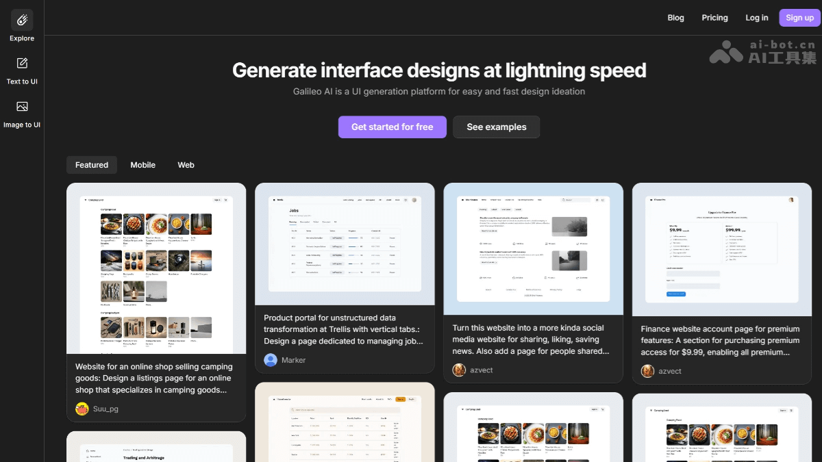 - 用户界面设计:Galileo AI 能快速生成应用程序和网站界面的原型,加速产品开发周期。