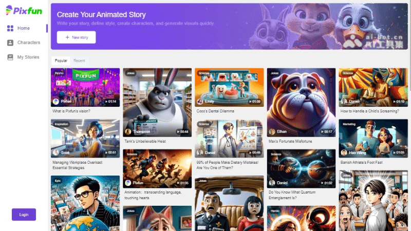 Pixfun 是一站式动画故事AI视频生成平台。支持用户快速编写故事、定义风格、创建角色,并生成视觉内容。平台的愿景是通过动画跨越语言障碍,触动人心。Pixfun 还提供游戏化学习解决方案,开发定制化游戏和提供游戏即服务(GaaS)模式,提升学习体验。Pixfun 还提供 QuizGame 应用程序,通过游戏化的方式帮助用户在金融、市场营销、销售等多个领域提升知识和技能。