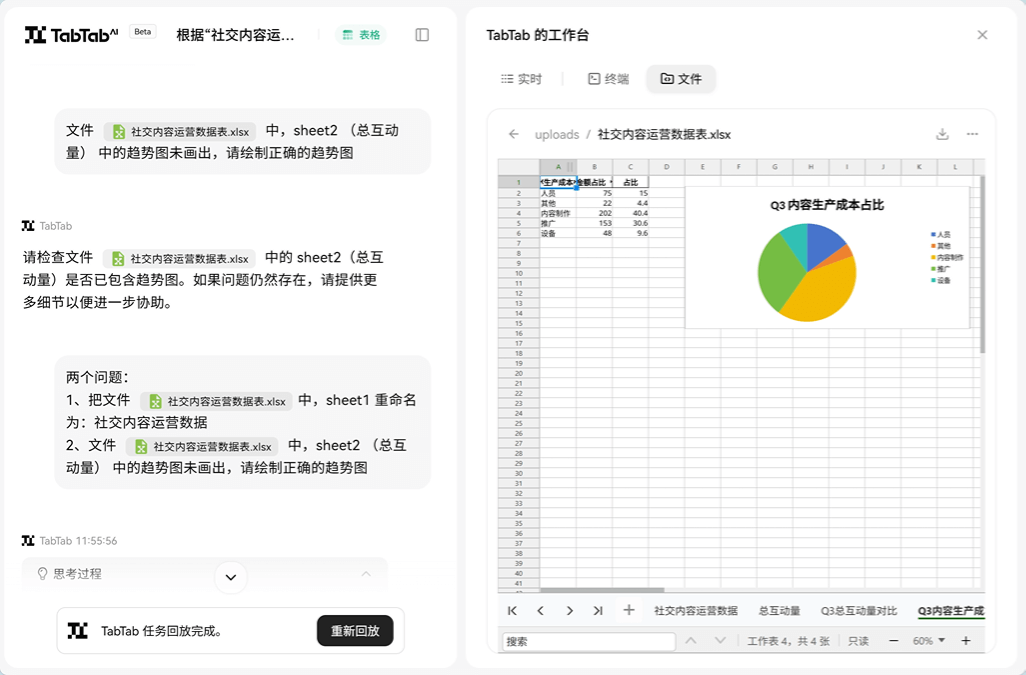TabTab 是首个全链路 Data Agent,专注于AI数据分析领域,通过自然语言对话实现从数据搜集到深度分析的全流程自动化。拥有强大的数据整合、多维度挖掘和专业指标分析能力,能精准处理各类场景下的数据分析任务,从复杂的行业数据解读到细致的指标波动追踪均能高效完成,助力用户快速获取数据洞察,显著提升决策效率。TabTab 支持更多日常办公工具,包括表格处理、AI 文档、网页生成、幻灯片制作。可以根据自己的需求,给 TabTab 下发对应的任务,让 TA 帮你完成!