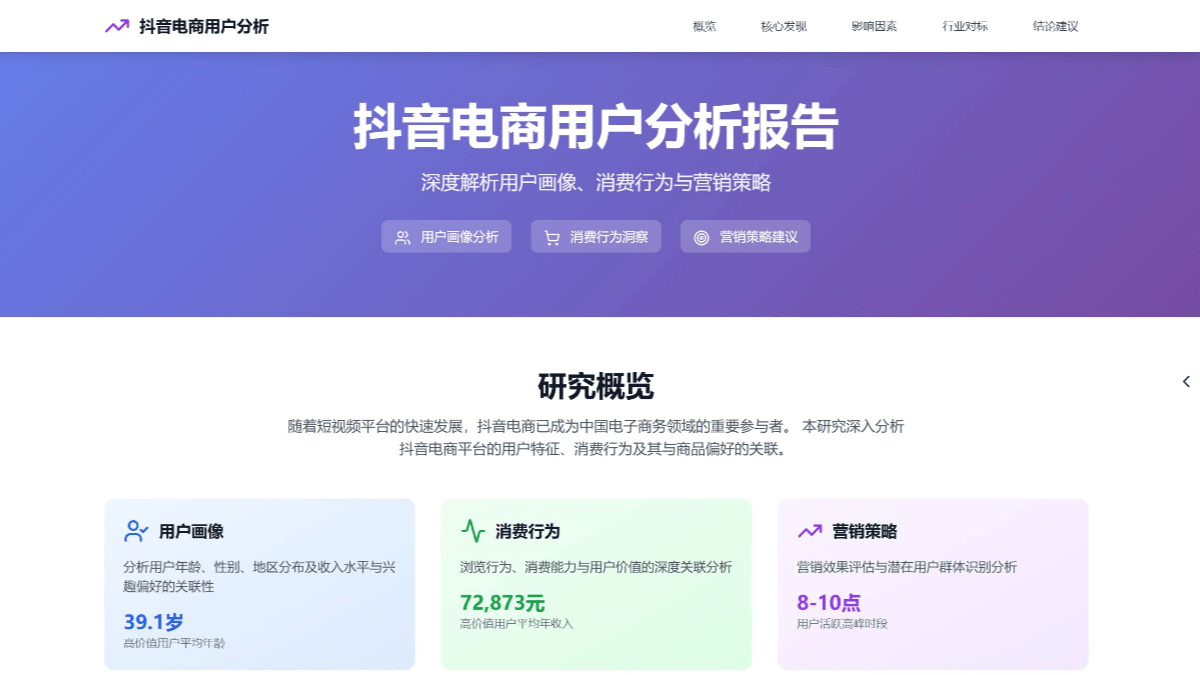 我上传了一份抖音电商平台的用户特征数据,请你帮我完成如下数据分析,并生成总结报告: